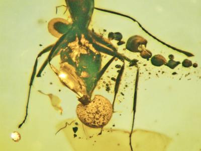 5000万年前琥珀中的蚂蚁化石上发现新蘑菇
