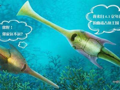 游动的“三叉戟”:长吻三歧鱼(右)与昭通三歧鱼(左)生态复原图(杨定华绘)4.1...