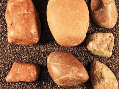 一项研究表明图中粉红色石英岩块在蜥脚类恐龙的肚子里被运送了大约600英里,穿过今...