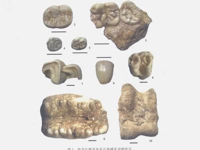 毕节巨猿牙齿化石和哺乳动物化石(张兴龙供图)巨猿的下颌骨(资料图)巨猿的牙齿化...