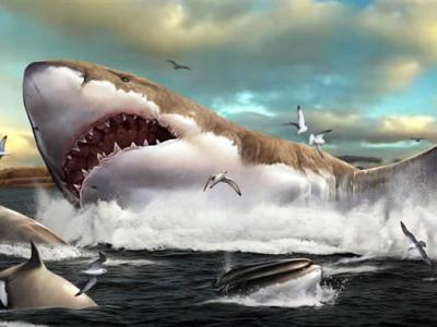 生活在2300万到300万年前的巨齿鲨体长可以达到大白鲨的3倍。图片来源:HUMBERTO FE...