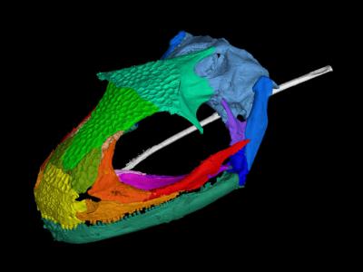 这只不幸的化石鸟类,喉咙里藏着800多块细小石块(颈骨左侧的灰色团块可见)。图片...