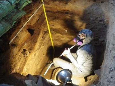 研究小组成员在美国俄勒冈州的佩斯利洞穴工作。(Credit: Dr John Blong, Newcastl...