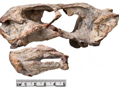 白氏桃河兽化石标本(刘俊 供图)系统发育简图显示核心二齿兽类一支的关系(刘俊 供...
