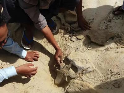 缅甸马圭省村民放羊时发现奇怪头骨化石