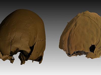有意识的颅骨改形行为导致松花江人颅骨(左)和脑(右)严重变...