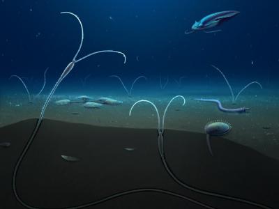 云南省寒武纪早期丹尼多毛虫Dannychaeta tucolus复原图(Robert Nicholls绘)云南省...
