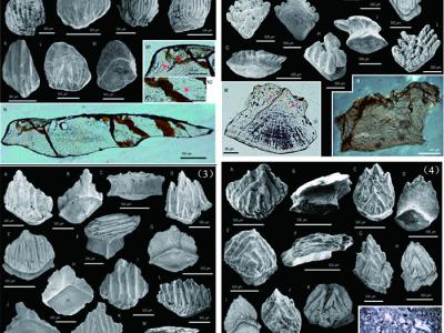 图1: 新疆柯坪—巴楚地区早志留世软骨鱼类四个新属:(1) 塔克拉玛干鱼Taklamaka...