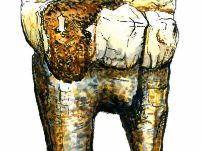 南方古猿七颗采样臼齿之一(StW-148)的手绘插图。来源:uux.cn/Dom Jack,马克斯·...