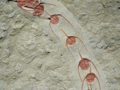 新发现的古头带虫属(Ampyx)三叶虫化石证实这种远古海洋生物会集结成线状群集,目...
