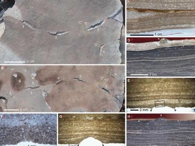 遗迹化石Yichnus levis化石及其切片以碳质压膜形式保存的海绵化石精美瓶状海绵Vasi...