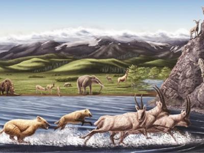 上新世(距今约四五百万年前)西藏阿里地区札达动物群生态复原图图为西藏似沙巴棕化...