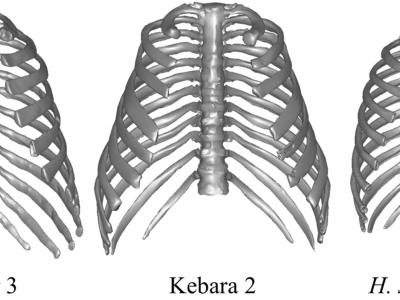 Shanidar 3、Kebara 2和智人的胸腔3D模型正视图。来源:uux.cn《人类进化杂志》(2...