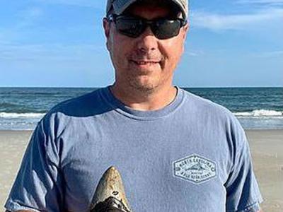 美国北卡罗来纳州男子在海滩散步时幸运捡到巨齿鲨牙齿化石(神秘的地球uux.cn报道)...