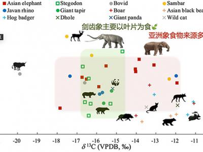 广西扶绥渠仔洞动物群的碳氧同位素数据分布图 (马姣 供图)东...