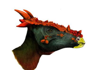 根据厚头龙(Pachycephalosaurus)颅骨化石重建的模型。这种恐...