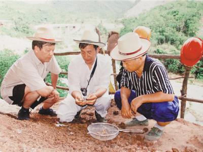2006年,昌江信冲洞动物化石发掘现场。陈若龙 翻拍熊猫犬齿化...