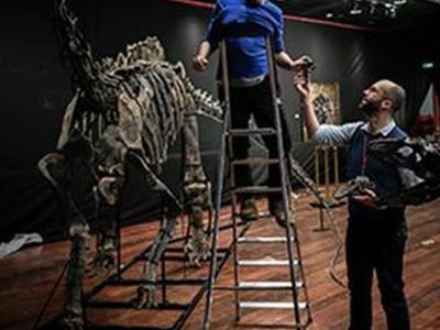 意大利科学顾问组装梁龙骨架化石意大利科学顾问组装异特龙骨架...