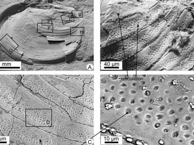 长形叠饰叶肢介副模标本电镜图版(图1光镜)(神秘...