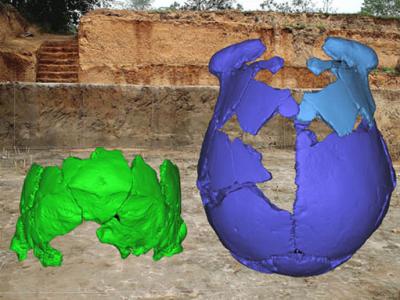 河南灵井遗址发现的许昌人1号(右侧)和2号(左侧)头骨...