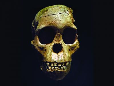 Taung儿童头骨的复制品。Taung的孩子是生活在200多万年前的非洲南方古猿。。(图片...