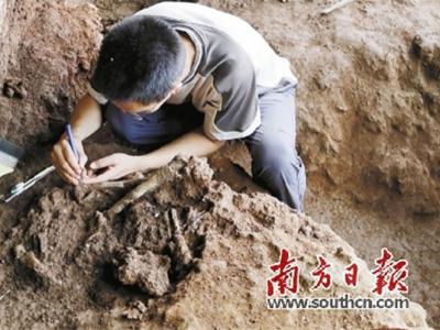 古人类人骨化石发掘现场。 省考古所供图 2号洞发现的贝壳及螺壳。 南方日报记...