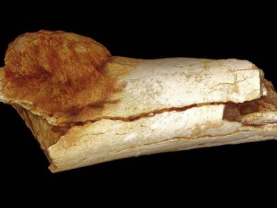 微电脑断层扫描(micro-CT)影像显示,远古人类近亲的趾骨长了肿瘤。 / PHOTOGRA...