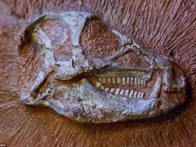 一块哺乳动物头骨化石,牙齿窝里的沉积物,原来是史前蜜蜂筑的巢穴。图片来源:uux...