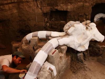 墨西哥有工人发现一具长毛象骸骨。 学者相信该长毛象曾被人类分尸取肉。 (神...