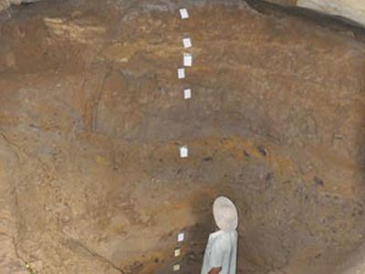 毕节麻窝口洞——洞内地层 (赵凌霞供图) 古人类化石 (赵凌霞供图) 灵长...