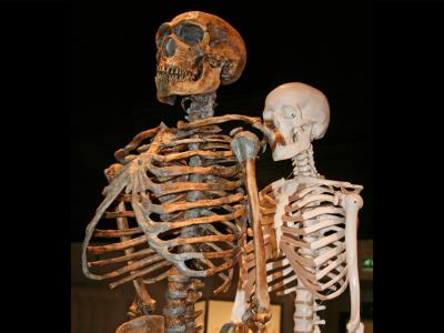 新的研究表明,尼安德特人(前骨骼)在47000年前与人类(后骨骼)交配了近7000年。...