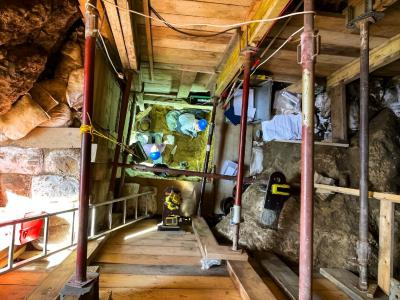 德国拉尼斯遗址的研究人员不得不绕过一块巨大的岩石来寻找人造工具。(神秘的地球u...