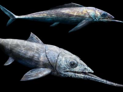 Alienacanthus的现场重建。基于已灭绝的和现代的长颚鱼类的身体形态(细长、纺锤形...