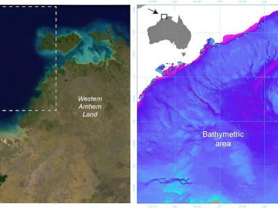 a显示西北萨胡尔大陆架的测深数据,其中预测了海平面上升和区域海平面曲线。Ai海岸...