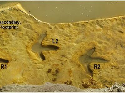 发现远古时代羽毛般的恐鸟脚印化石