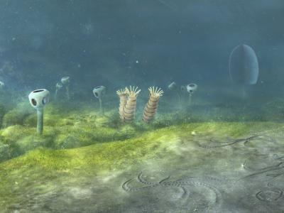 纳米比亚纳马群埃迪卡拉纪海底的重建,显示了早期动物的多样性。鸣谢:牛津大学自然...