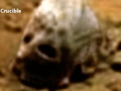 “外星人猎人”声称在好奇号火星图像中发现“大脚野人头骨” 图中的奇特结构岩...
