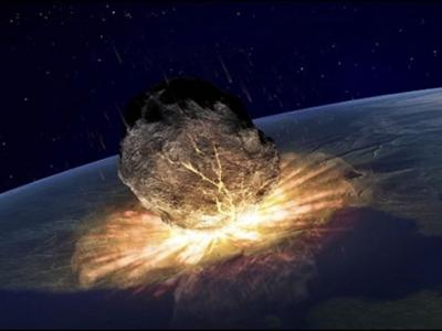 小行星或彗星撞地球将会导致人类末日。图为构想图。...