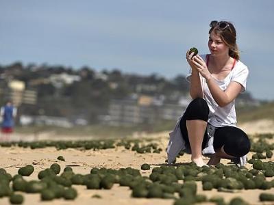 (神秘的地球报道)澳洲悉尼迪怀(Dee Why)海滩自上周二起,陆续有数百个神秘的绿色...