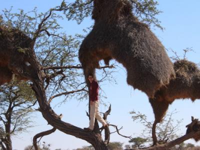 非洲纳米比亚半干旱平原上的世界最大鸟巢