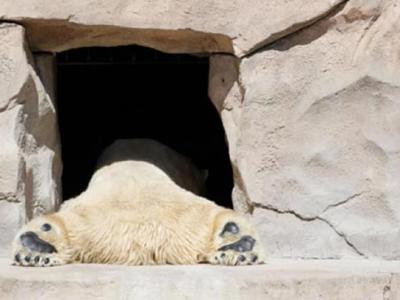 正在进行冬眠的北极熊(它们的大脑中含有能进行自我修复的特殊蛋白质) 人类是...