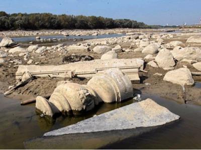 波兰华沙市维斯瓦河干涸 350年前沉船宝藏