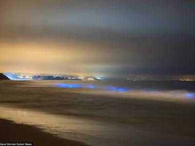 由于藻类繁殖的自然现象导致部分海水被美丽的蓝色光辉所照亮 这些神奇的照片是...