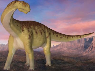 艺术家所描绘的圆顶龙。圆顶龙是已经灭绝的蜥脚类恐龙。它们是北美洲最常见的大型...