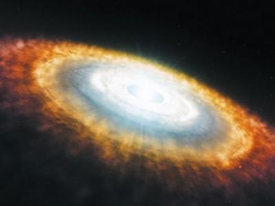 艺术表现恒星北落师门环绕盘中两个行星相撞的过程。图片来源:uux.cn托马斯·穆勒(...