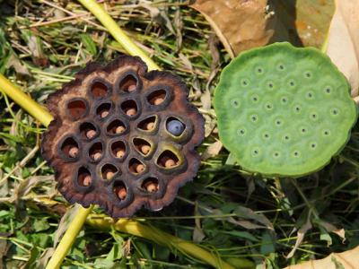 成熟与未成熟莲蓬的特写,是经常在密集恐惧症群体里...