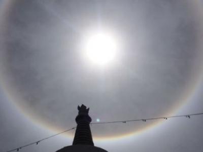 西藏拉萨今天早上出现日晕奇观 (神秘的地球)今天是24节气的立夏,西藏拉萨早上...