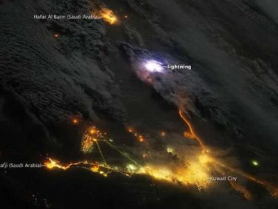 宇航员在国际空间站拍摄到科威特上空出现闪电 (神秘的地球)据腾讯科学(悠悠/...