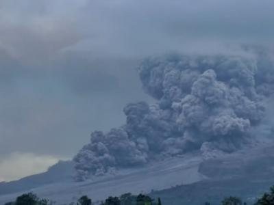 印度尼西亚苏门答腊锡纳朋火山剧烈喷发形