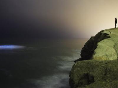 圣地亚哥的海浪晚上发出淡淡蓝色萤光